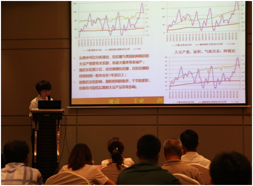 招金期貨研究院農(nóng)產(chǎn)品團(tuán)隊(duì)負(fù)責(zé)人趙鑫做演講