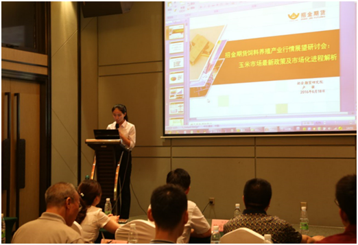 招金期貨農(nóng)產(chǎn)品研究員盧敏做演講