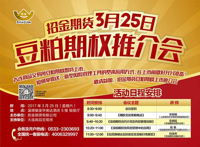 敬邀參加3月25日《招金期貨豆粕期權(quán)上市推介會(huì)》!