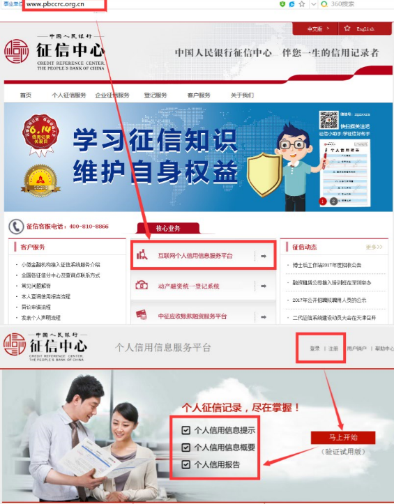 2、點擊互聯(lián)網(wǎng)個人信用信息服務(wù)平臺